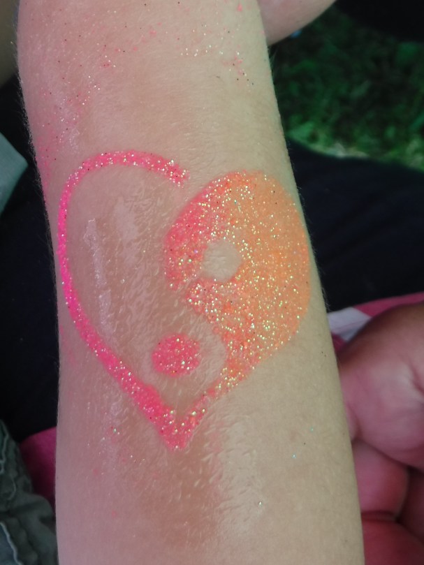 Some of our work: Face painting, Festival Glitter, Glitter & Air Brush Tattoos
